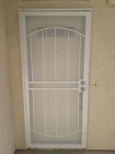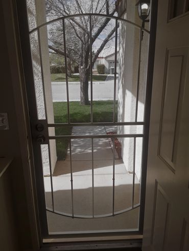 Custom built heavy duty sliding screen door, color options to match existing door frame, all aluminum parts and handle.